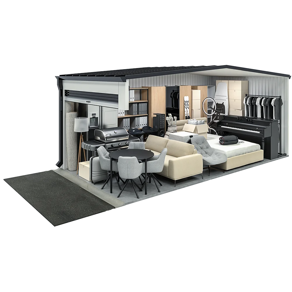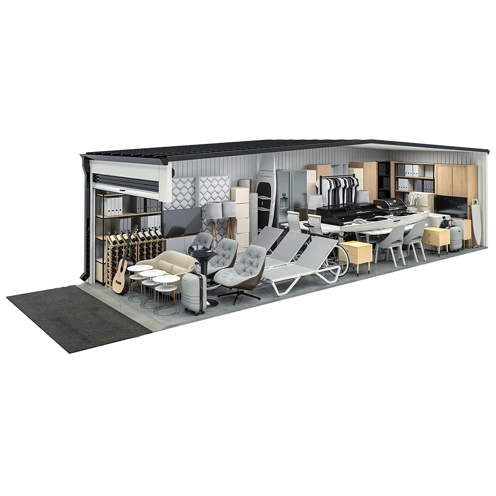 A 5′ × 10′ hallway unit is great for boxes or small furniture, while a 10′ × 10′ can fit the furnishings of an apartment. If you need more space, a 10′ × 15′ drive-up unit is ideal for larger homes or office storage. For vehicles, boats, or trailers, our 12′ × 20′ covered parking is a perfect fit. We also offer oversized 14′ × 40′ fully enclosed spaces that work well for RVs and commercial storage needs.